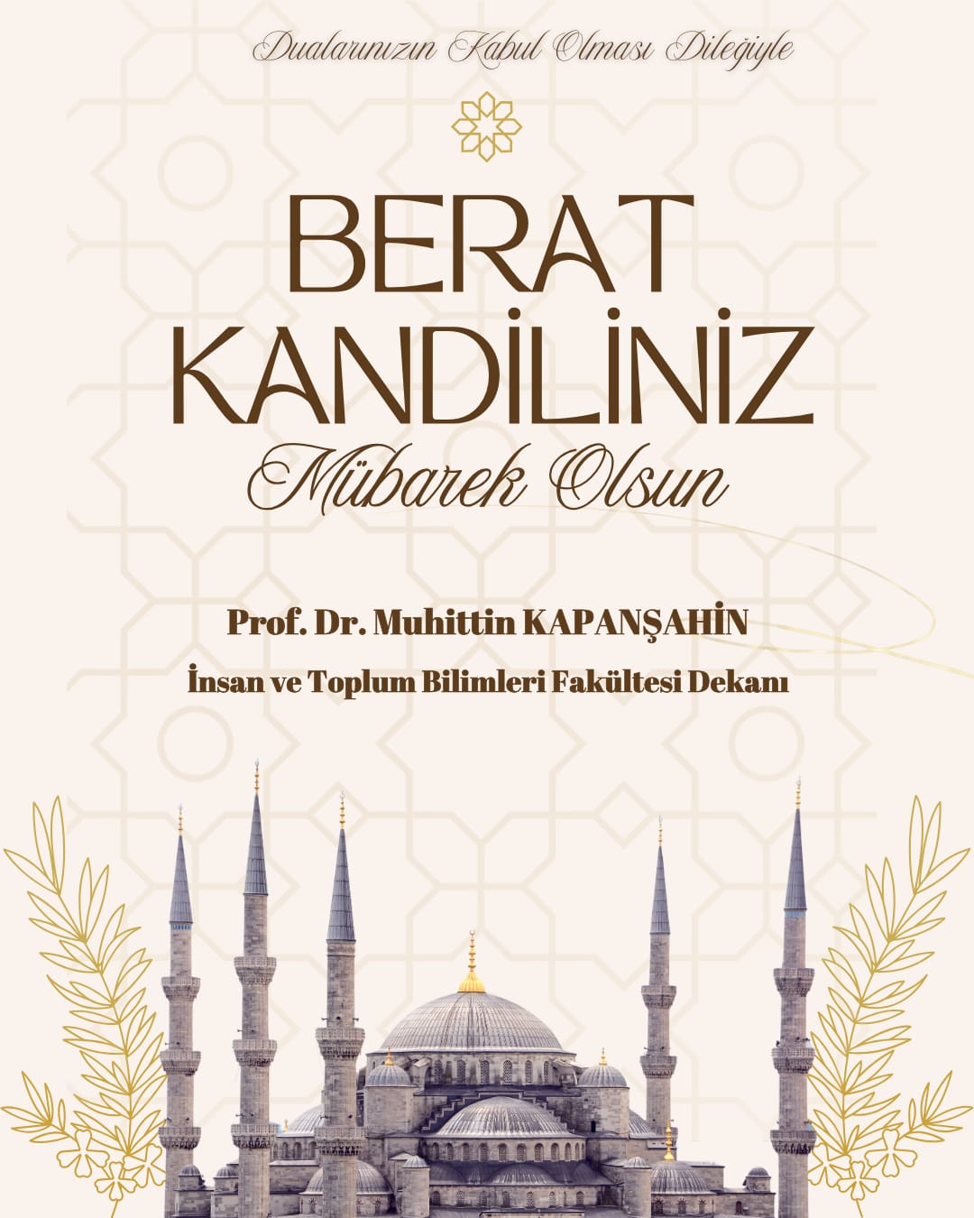DEKANIMIZDAN BERAT KANDİLİ MESAJI