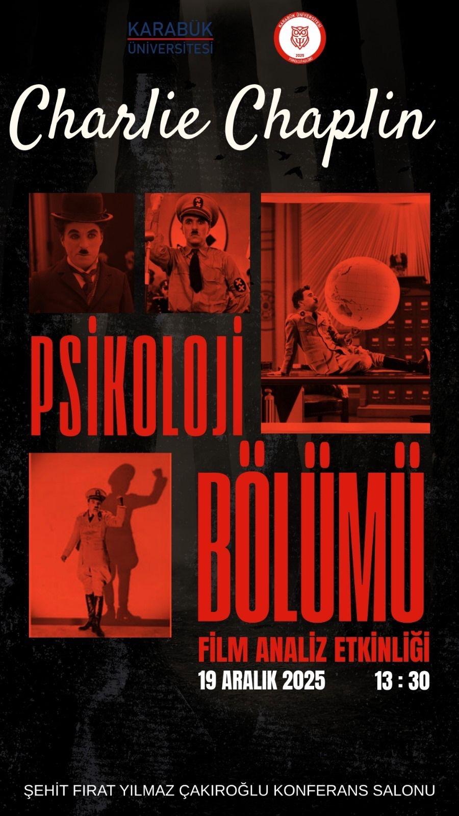 Fakültemiz Psikoloji Bölümü ve Psikoloji Kulübü öğrencileri tarafından düzenlenen Charlie Chaplin Film Analizi Etkinliği’ne tüm öğrencilerimiz ve akademik personelimiz davetlidir.