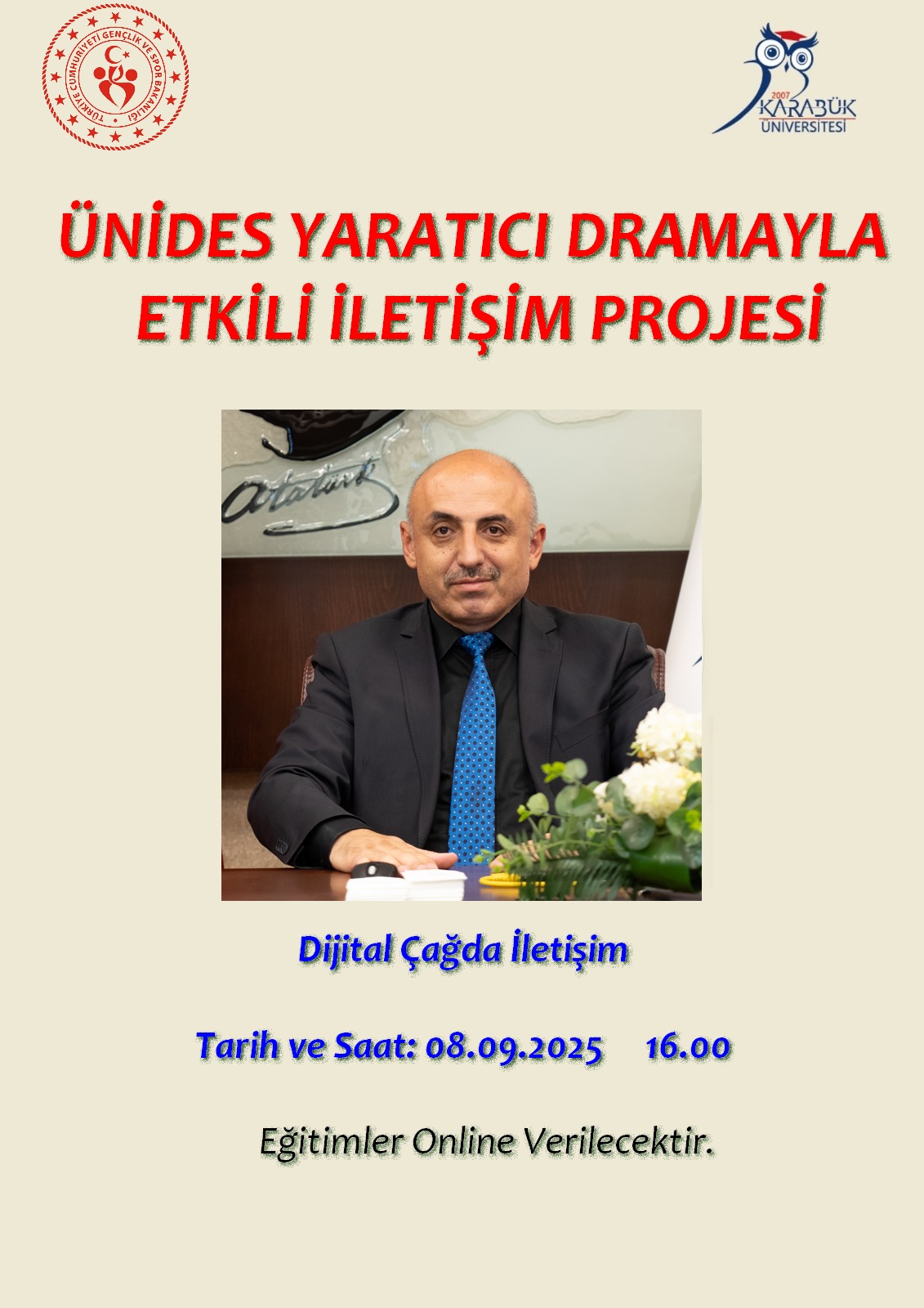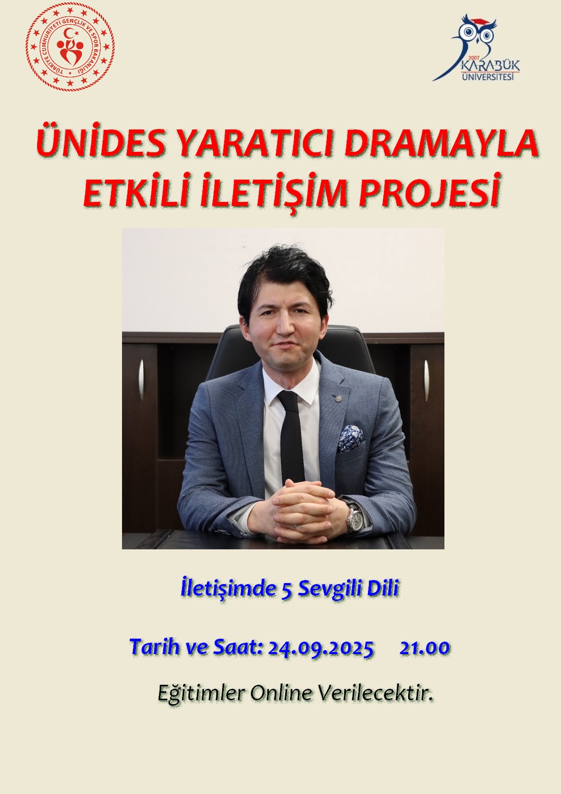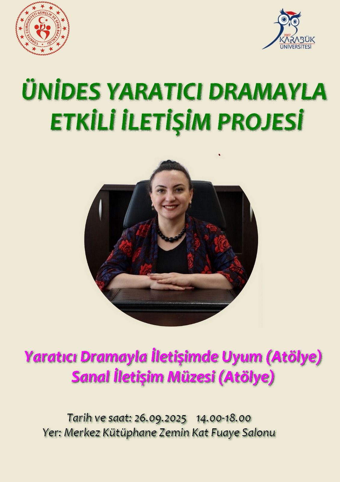 Karabük Üniversitesi İnsan ve Toplum Bilimleri Fakültesi bünyesinde Dr. Öğr. Üyesi Selim GÖK danışmanlığı ve Bahattin Talha ÖZTÜRK başkanlığında faaliyet yürüten Edebiyat Kulübü, “Yaratıcı Dramayla Etkili İletişim” başlıklı ÜNİDES projesini başarıyla tamamlamıştır. Projede Dr. Öğr. Üyesi Selim GÖK, Dr. Öğr. Üyesi Nesrin GEZİCİ ve Öğr. Gör. Mesut DOĞAN tarafından 7 farklı oturumda gerçekleştirilen eğitimler verilmiştir. Proje sonunda ise Ankara’da Millet Kütüphanesi, Eski Meclis, Kelime Müzesi, Ankara Kalesi, Taceddin Dergâhı ve Mehmet Akif Ersoy Müzesi gibi ilim ve kültür merkezlerini kapsayan bir Ankara gezisi düzenlenmiştir. Gençlik Hizmetleri Müdürü Hüseyin BİLİCİOĞLU başta olmak üzere projenin uygulama safhalarında destekleriyle yanımızda olan Gençlik ve Spor Bakanlığı yetkililerine teşekkür ederiz.